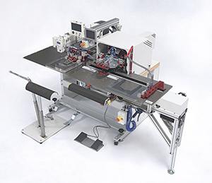 Automatic workstation for pocket folding and attaching in one operation. User doesn’t need to utilize any pocket creaser unit.
